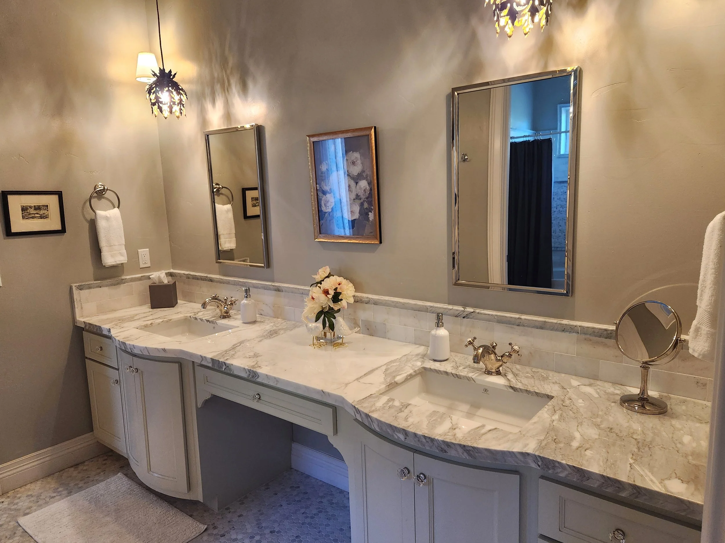 Jack & Jill: 2 Queen Bedrooms with shared oversized bath (double sinks with separate private shower/tub & toilet)